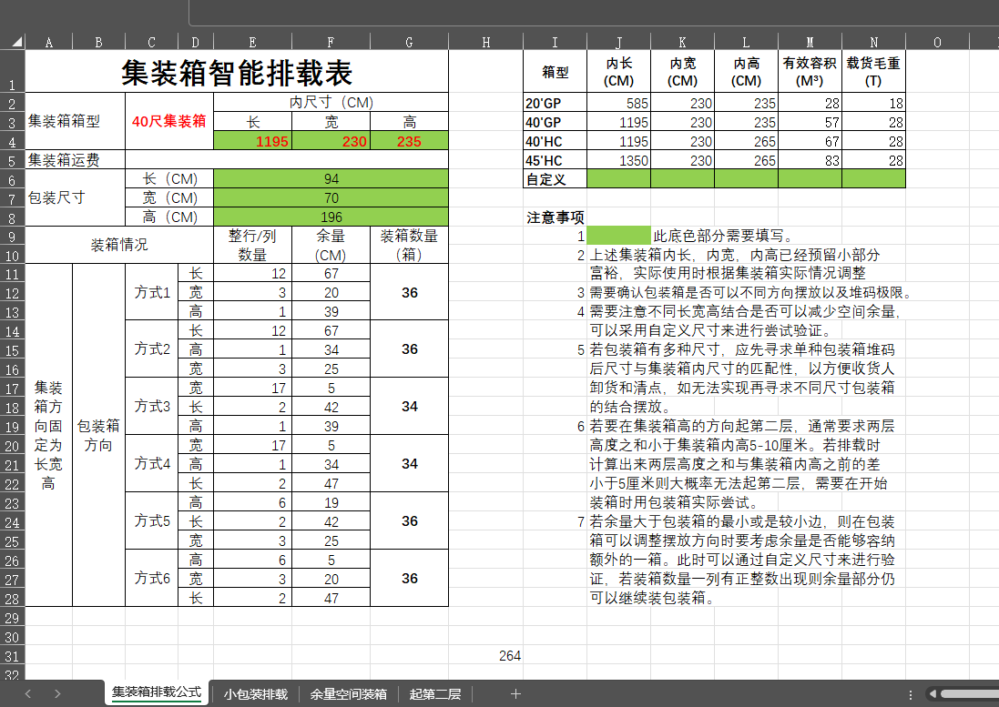 集装箱排载公式,集装箱排载软件,集装箱智能排载工具。